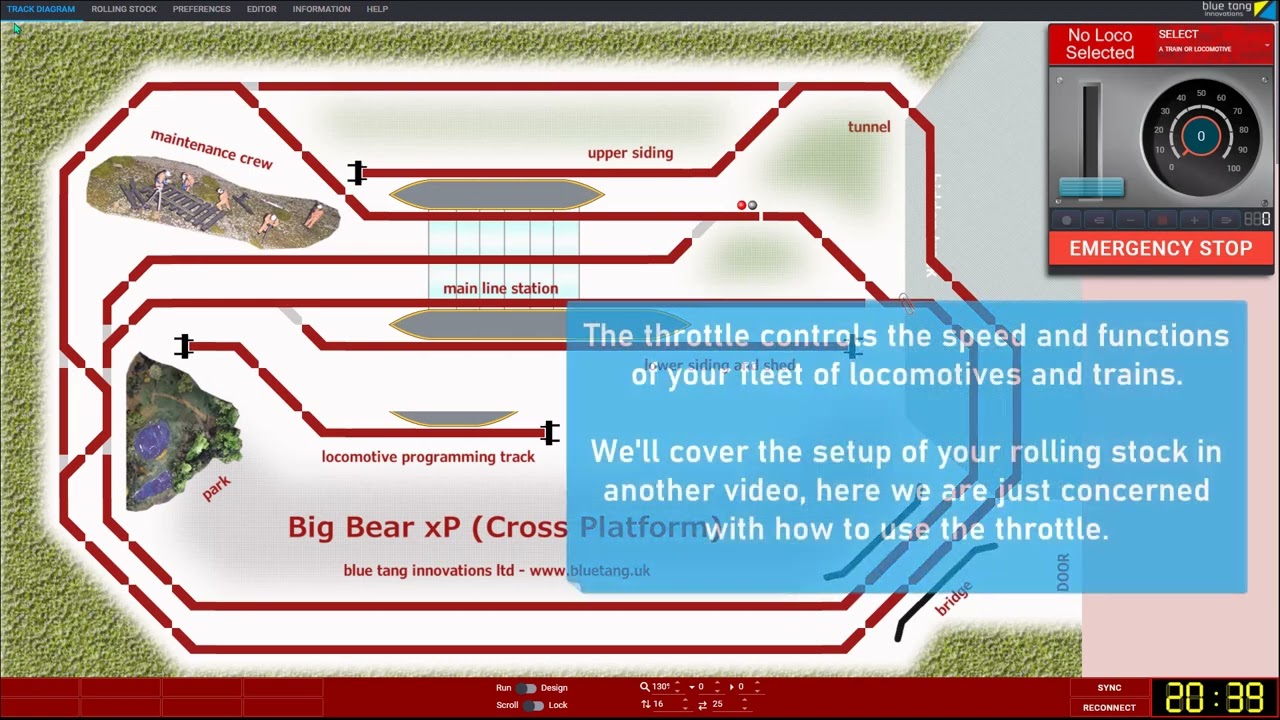 A railway modeller is in his loft firing up his Flying Scotsman, setting the route to Edinburgh and off she steams. He, and it is almost certainly a ‘he’, is controlling his trains and signals using what is known as Digital Command and Control or DCC for short. Electronic signals travel from his control panel to the tracks where computer chips in the trains and across the layout make the magic happen. Let us call this man, John. John is controlling his layout from the screen of a computer, it’s as if he is the signalman and the driver all in one, the software he is using displays his trains and mimics the track on the layout and this software is called the ‘Big Bear Model Rail Controller’.